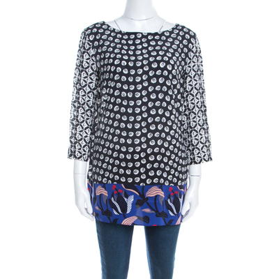 From Escada, this tunic blouse is an immaculate balance between simple and fresh chic. This printed piece makes an exceptional statement no matter where you wear it to. Masterfully tailored in rich silk, team this tunic blouse with colourful accessories to form an impressive ensemble.