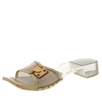 These chic sandals by Louis Vuitton are the most versatile pair you can possibly own. Wear these transparent acrylic shoes when you go out and watch heads turn. With leather trims and signature lock detail on the uppers, these are crafted to offer you maximum comfort. Transform into the style diva that you are wearing these beauties on your feet.
