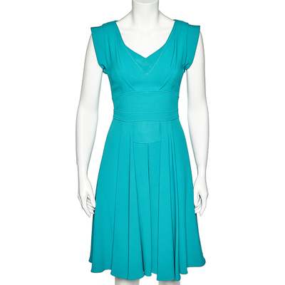 This dress midi dress personifies grace and femininity in every way. A creation from the House of Elie Saab, this midi dress is tailored skillfully using teal blue crepe material with pleated details. Pair this piece with stilettoes and matching accessories to achieve a statement look.