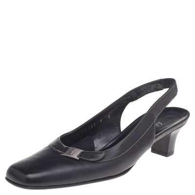 Salvatore Ferragamos timeless aesthetic and stellar craftsmanship in shoemaking is evident in these versatile pumps. Crafted from black leather, the square toe silhouette is adorned with silver tone hardware and then raised on block heels.