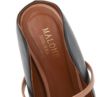 The Maureen sandals by Malone Souliers have been designed creatively to exude nothing but excellence The black leather construction brings to life a pointed toe silhouette and the dual straps across the vamps add a refined touch. Comfortable leather lined insoles and stiletto heels complete this gorgeous pair.