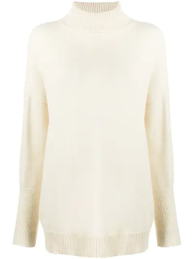 Cream roll neck cashmere sweater from Chinti and Parker featuring a roll neck, long sleeves, a relaxed fit and ribbed trimming.