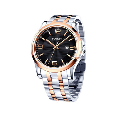 Часы серебристого оттенка с позолоченными рантом и звеньями, чёрным циферблатом подчеркнут характер и стиль обладателя. Твоя жизнь, твои правила!