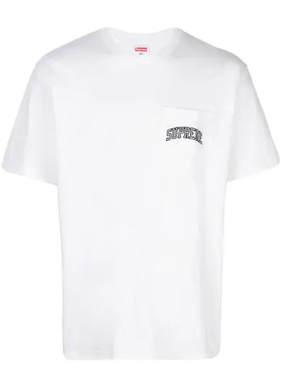 The collaboration between '47 Brand, Supreme, and the Oakland Raiders continued with this clean white T-shirt. Supreme honored the Raiders and the team's historical relevance in both the worlds of sports and pop culture during its Spring/Summer 2019 season. Featured on the pocket of the short sleeve tee is Supreme branding done up in black and silver Raiders colors. Positioned centrally on the back of the T-shirt is a large Raiders pirate logo, so everyone knows what team you rep.