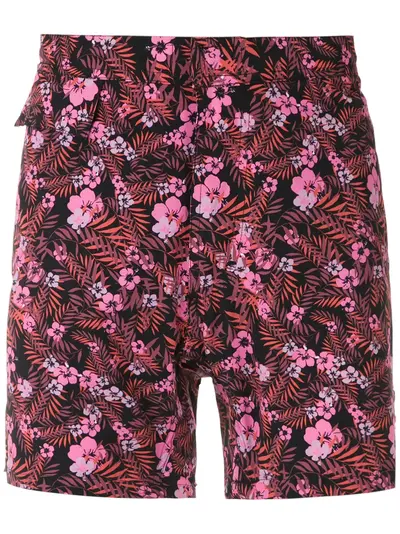 Black Floral tactel swim shorts from Amir Slama featuring a mid rise, an elasticated waistband, a back pocket, an all-over print and a slim fit.