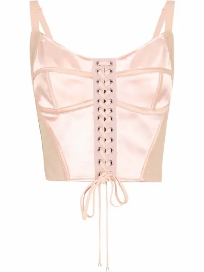 pale pink silk blend corset style front lace-up fastening adjustable shoulder straps sheer panelling stretch-design