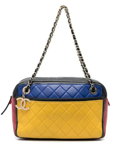 circa 2013-2014 yellow/navy blue/red/black leather colour-block design diamond quilting signature interlocking CC logo two leather and chain-link shoulder straps top zip fastening main compartment internal logo patch slip pocket to the front slip pocket to the rear silver-tone hardware Serial Number: 18029095