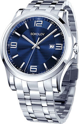 Мужские кварцевые часы. Надежный японский механизм Miyota 2115. Центральные часовая, минутная и секундная стрелки. Апертура даты в позиции 3 часов. Синий циферблат. Круглый корпус выполнен из полированной нержавеющей стали. Диаметр корпуса составляет 45 мм. Стальной браслет шириной 22 мм, раскладывающаяся застежка-бабочка. Прочное минеральное стекло устойчивое к мелким механическим повреждениям. Водостойкость WR 50 (мытье рук, дождь).
