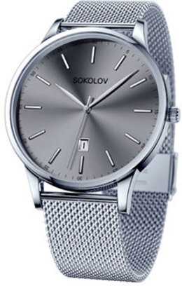 Мужские кварцевые часы. Надежный японский механизм Miyota 2115. Центральные часовая, минутная и секундная стрелки. Апертура даты в позиции 6 часов. Серый циферблат. Круглый корпус выполнен из полированной нержавеющей стали. Диаметр корпуса составляет 42 мм. Стальной браслет шириной 22 мм выполнен в технике миланского плетения, раскладная застежка. Прочное минеральное стекло устойчивое к мелким механическим повреждениям. Водостойкость WR 30 (брызги).