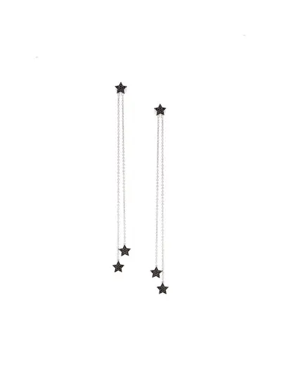 Bring sleek appeal to your look with these 18kt white gold STASIA chain drop earrings from ALINKA featuring pavé set diamonds and a mini star stud with a detachable attachment featuring two star on the end of a long chain. All stars are pavé set with 0.25ct black diamonds. The diamond settings are finished with back rhodium. The chains are detachable so the earrings can be worn as a stud or as pictured. These earrings come as a pair.