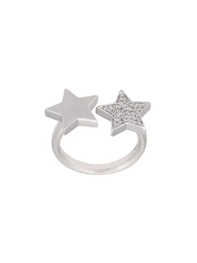 18kt white gold 'Stasia' double star diamond ring from ALINKA featuring an open design with a plain polished star and a star embellished with pavé set round brilliant cut diamonds. Minimum diamond weight 0.10ct.