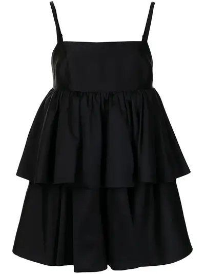 black silk-wool blend spaghetti straps square neck concealed rear zip fastening empire line tiered skirt