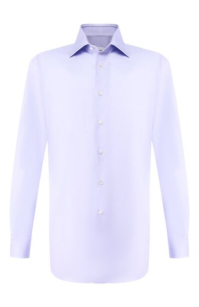 Сиреневая сорочка из весенне-летней коллекции станет достойной альтернативой белоснежным моделям в формальном гардеробе. Для пошива изделия с воротником кент использовали мягкую гладкую ткань на основе длинноволокнистого хлопка, выращенного и обработанного без применения ГМО и химикатов. За счет особого переплетения нитей материал почти не мнется, поэтому вещь будет долго выглядеть опрятно.