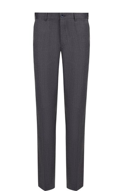 Прямые меланжевые брюки серого цвета рифмуются с чем угодно: с футболкой, с кардиганом, а в сочетании с поло и оксфордами вещь не будет противоречить офисному дресс-коду. Для создания модели мастера марки использовали тонкую легкую шерсть с добавлением прочного шелка. Материал комфортно облегает фигуру, не сковывая движения. Изделие вошло в коллекцию сезона весна-лето 2018 года.