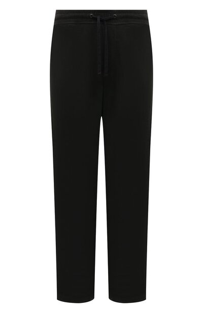 Для создания брюк с четырьмя карманами Джеймс Пирс выбрал мягкий хлопковый трикотаж черного цвета. Модель с широким поясом-кулиской и эластичными манжетами вошла в коллекцию сезона весна-лето 2017 года. Рекомендуем сочетать со светло-голубой футболкой и синими кедами.