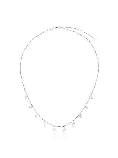 This 18K white gold SHAY Love diamond necklace features is crafted in the United States and features a clasp to fasten its slim chain design, and is interrupted by diamond pendants and diamond lettering. SHAY uses natural and untreated gemstones, resulting in your piece being one of a kind. The 'L' word can sometimes be difficult to say, so why not say in SHAY jewellery?