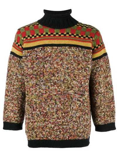Multicoloured wool blend mixed pattern jumper from Jean Paul Gaultier Pre-Owned featuring a roll neck and long sleeves. Please be mindful that this piece has led a previous life, and may tell its story through minor imperfection. Purchasing this item continues its narrative, so you can be confident that you’re making a POSITIVELY CONSCIOUS choice for the planet.