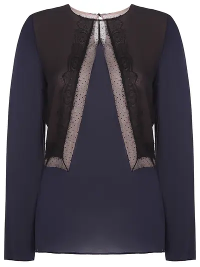 Dorothee Schumacher Блуза шелковая с кружевом 1267541 (синий, lpn9518648)