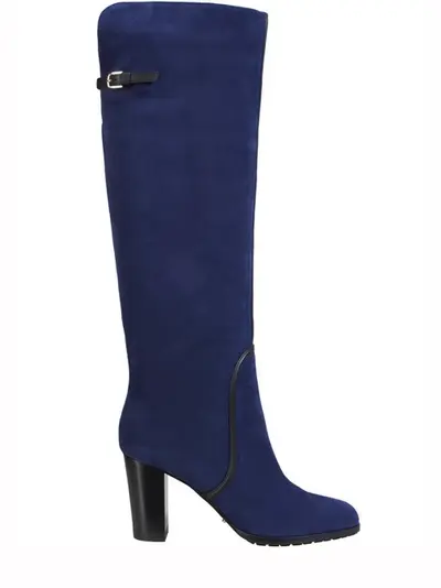 -Сапоги от Sergio Rossi с закругленным мыском. -Модель выполнена из замши синего цвета, отделка из кожи. -Внутренняя отделка из кожи. -Застежка в виде ремешка с пряжкой на голенище. Высота каблука: 8 см.
