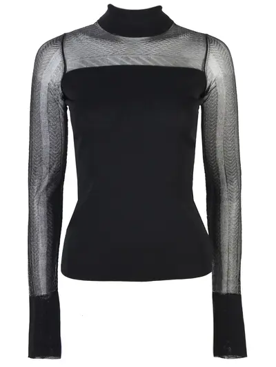 -Черный топ с полупрозрачными деталями от Roland Mouret.