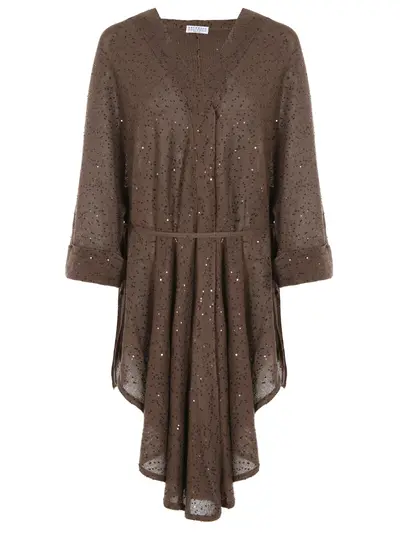 -Кардиган из шелка и льна с пайетками от BRUNELLO CUCINELLI.