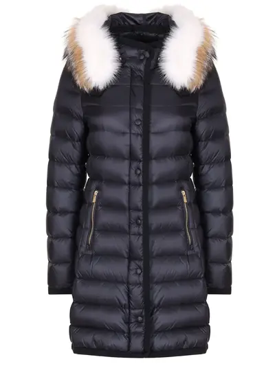 -Длина миди, приталенный силуэт, длинные рукава, прорезные карманы на молниях, объемный капюшон с меховой отделкой, застежка - кнопки и молния.