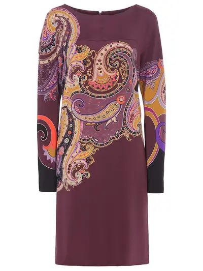 -Платье бордового цвета с принтом от ETRO.