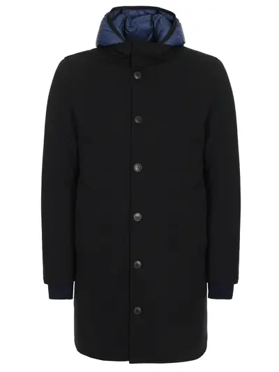-Темно-синяя удлиненная куртка-пуховик от KITON.