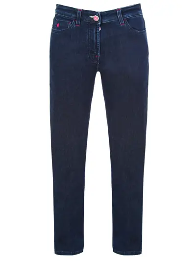 -Темно-синие зауженные джинсы смешанного состава от SCISSOR SCRIPTOR. -Средняя посадка, пояс, шлевки, прорезные и накладные карманы, застежка-молния и пуговица, нашивка с логотипом бренда.