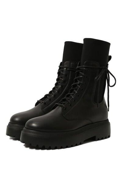 В основе черных ботинок Ranger лежит проверенная временем игра на контрасте форм. Тракторную подошву противопоставили верху из матового эластичного текстиля, который плотно облегает ногу. Связующим звеном между деталями стала нижняя часть с вырезами, как у челси, и шнуровкой, как у армейской обуви. Пару из мелкозернистой кожи Энио Силла включил в осенне-зимнюю коллекцию 2020 года.
