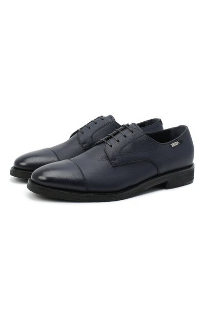 Темно-синие дерби подружатся с деловым костюмом или помогут завершить образ в стиле smart casual. Для пошива модели использовали зерненую оленью кожу. Этот мягкий эластичный материал считается одним из самых прочных, поэтому такие туфли прослужат не один сезон. Широкая вспененная подошва с квадратным каблуком не утяжеляет пару из осенне-зимней коллекции.