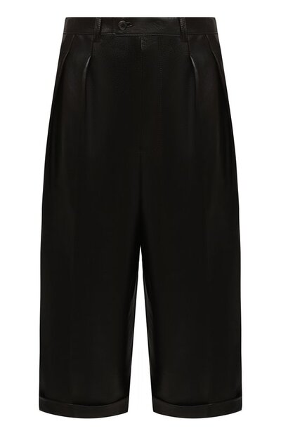 Темно-коричневые шорты одинаково гармонично дополнят и сдержанный образ с блузой в схожей гамме, и наряд с ярким топом. Для пошива модели длиной чуть ниже колена Энтони Ваккарелло выбрал гладкую мягкую кожу тонкой выделки. Изделие с высокой посадкой вошло в осенне-зимнюю коллекцию бренда, основанного Ивом Сен-Лораном.
