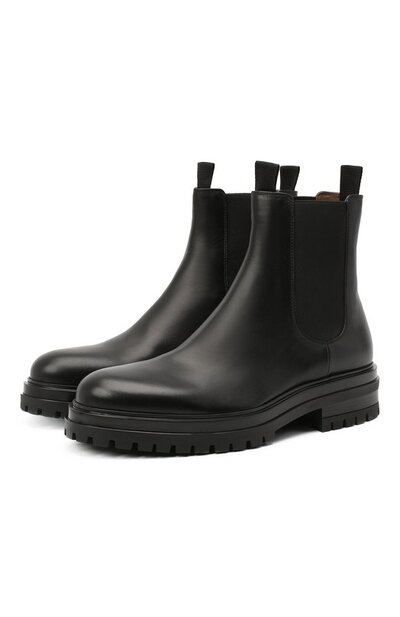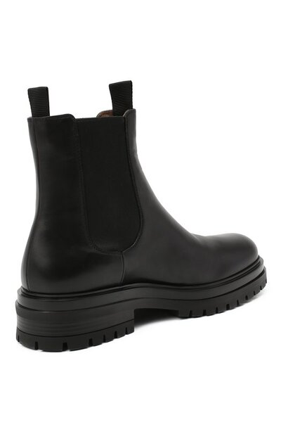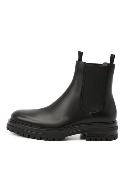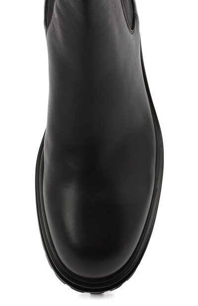 Черные челси с круглым мысом и литой массивной подошвой с широким каблуком легко впишутся и в лаконичный наряд, и в расслабленный образ. Ботинки, которые Джанвито Росси включил в коллекцию сезона осень-зима, сшиты из гладкой кожи с легким матовым блеском.