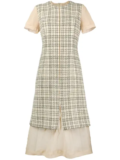 Debuting with entire black silhouettes and distressed fabrics, Comme des Garçons had its first boom in the 70's. Home of many eccentric items, this 1997's layered dress was made from cream beige wool and features a round neck, an invisible back zip fastening, short sleeves, a slim fit, a mid-length, a plaid pattern and a sheer panel. Please be mindful that this piece has led a previous life, and may tell its story through minor imperfection. Purchasing this item continues its narrative, so you can be confident that you’re making a POSITIVELY CONSCIOUS choice for the planet.