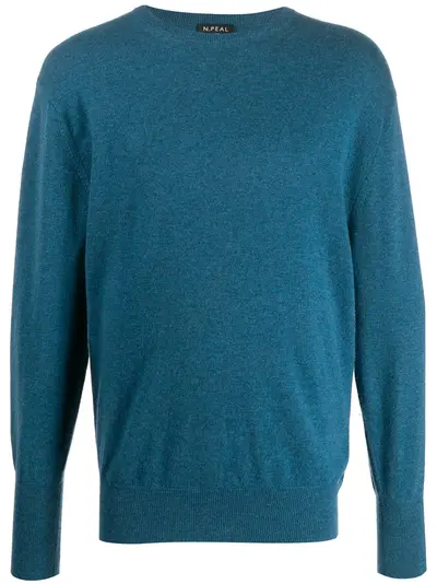 Blue cashmere crew neck jumper from N.Peal featuring long sleeves, a ribbed hem and cuffs and a relaxed fit.
