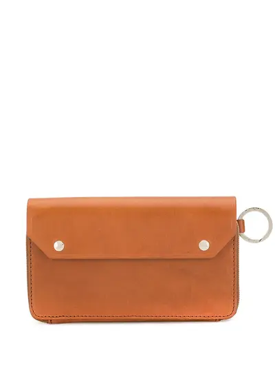 Orange brown bullhide leather and stainless steel long wallet from AS2OV featuring a foldover top with snap closure, an internal zipped pocket, multiple interior card slots and silver-tone hardware.