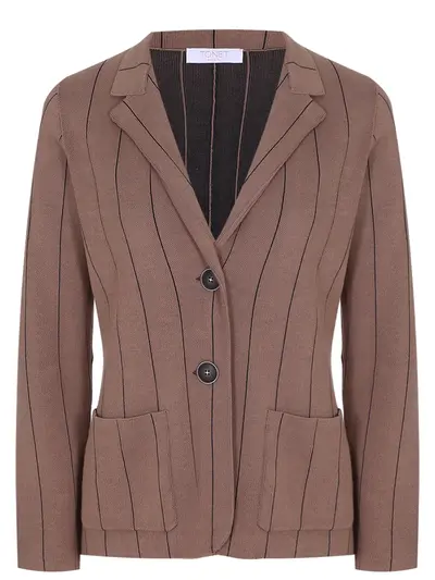 -Коричневый в полоску жакет из мягкого смесового хлопка с добавлением шелка от TONET.