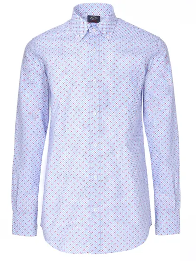 -Голубая с мелким принтом рубашка regular fit из хлопка от PAUL&SHARK.