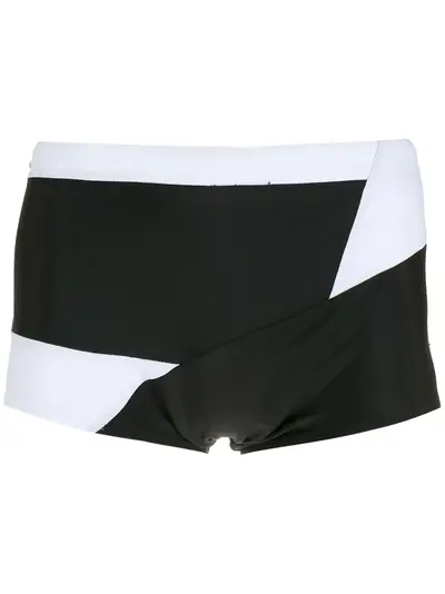 Black and white panelled two-tone swimming trunks from Amir Slama featuring a low rise, a panelled colour block design, a lining, a little coverage, an elastic polyamide fabric, a mid-weight stretch fabric and a fresh touch. This item is true to fit.