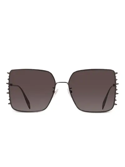black metal oversize frame stud embellishment tinted lenses logo-engraved arm