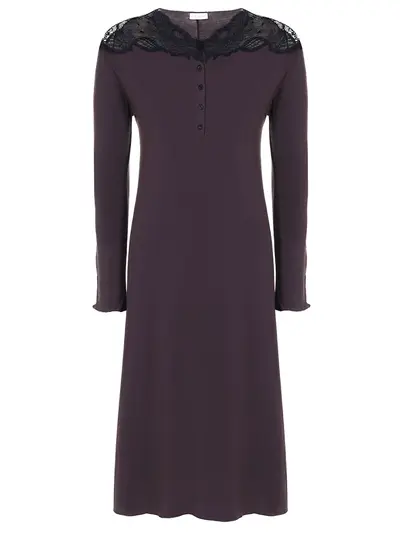 -Сорочка с кружевной отделкой от GIANANTONIO A.PALADINI. -Модель свободного кроя длины миди, длинные рукава, круглый вырез горловины, декор кружевом на плечах, пуговицы на груди.