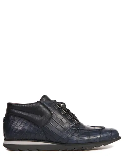 -Ботинки из синей фактурной кожи крокодила от BLU BARRETT.