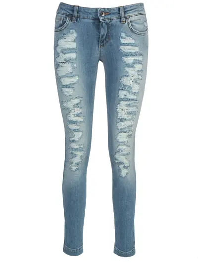 -Джинсы-скинни с эффектом потертостей и разрывов от Dolce & Gabbana.