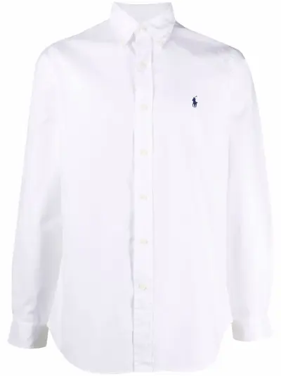 white stretch-cotton signature Polo Pony motif button-down collar front button placket long sleeves buttoned cuffs curved hem