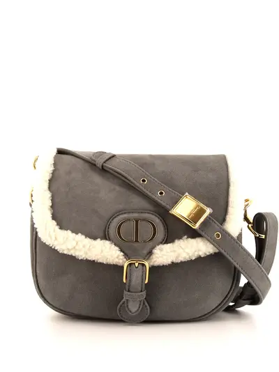 circa 2020 grey/ivory suede/shearling signature CD-initials findings shearling trim decorative buckle detail adjustable shoulder strap foldover top with magnetic fastening main compartment internal slip pocket internal logo stamp gold-tone hardware This item comes with a Collector Square certificate of authenticity. This piece comes complete with a protective dust bag.