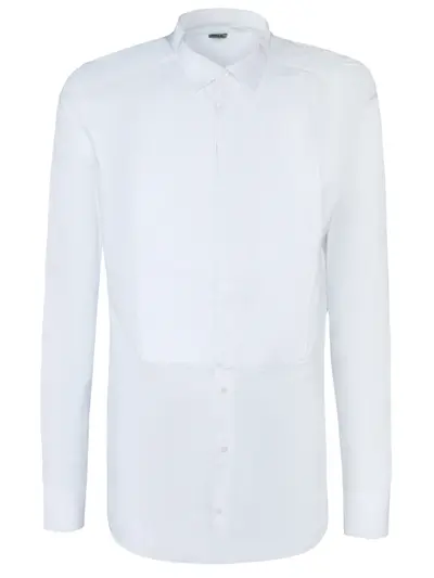 -Отложной воротник под бабочку, манишка, длинные рукава.