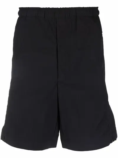 black recycled polyester lightweight construction logo print to the side elasticated drawstring waistband two side zip-fastening pockets cuff zips above-knee length