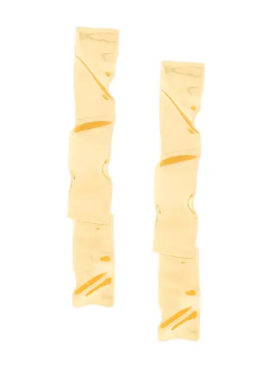 Gold plated brass Wave drop earrings from Coup De Coeur featuring a textured style, an engraved logo and a butterfly fastening. These earrings come as a pair.