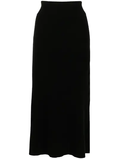 black cashmere-merino blend A-line skirt side slit knitted construction mid-length
