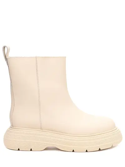 -Бежевые полусапоги из кожи от GIABORGHINI. -Невысокая модель с широким голенищем без дополнительных застежек, широкая толстая резиновая подошва, внутренняя отделка из кожи.